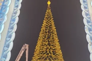 Вместе со Снегурочкой он зажёг главную ёлку на Соборной площади.