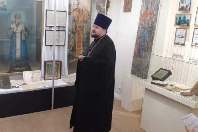Часть экспозиции, посвященной святым, представил на открытии идейный вдохновитель выставки, большой друг музей народной культуры, благочинный Грайворонского округа, настоятель Никольского собора Грайворона, протоиерей Андрей Колесников.