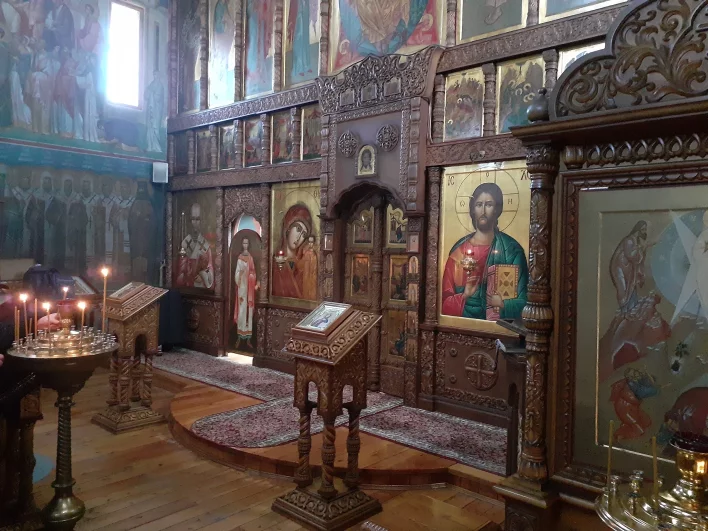 Есть тут подземный храм во имя Пресвятой Троицы, он имеет уникальный керамический иконостас замечательной красоты, созданный в Москве по специальному заказу. Никакой другой материал, кроме керамики, не может выдержать богатый йодистыми соединениями воздух пещер.