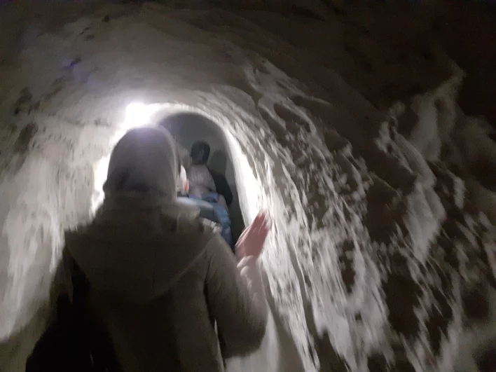 О том, как жили монахи под землей, теперь рассказывают и показывают паломникам. В пещерах, которые находятся на глубине примерно десять метров в толще горы, можно увидеть предельно аскетичные кельи, с кроватью и столом, вырубленными из мела. Эта такая меловая порода, что снаружи мел крепок, а если углубиться в него, он станет мягким, как пластилин, поясняют монахи, ему можно придать любую форму, и так он сохраняется.