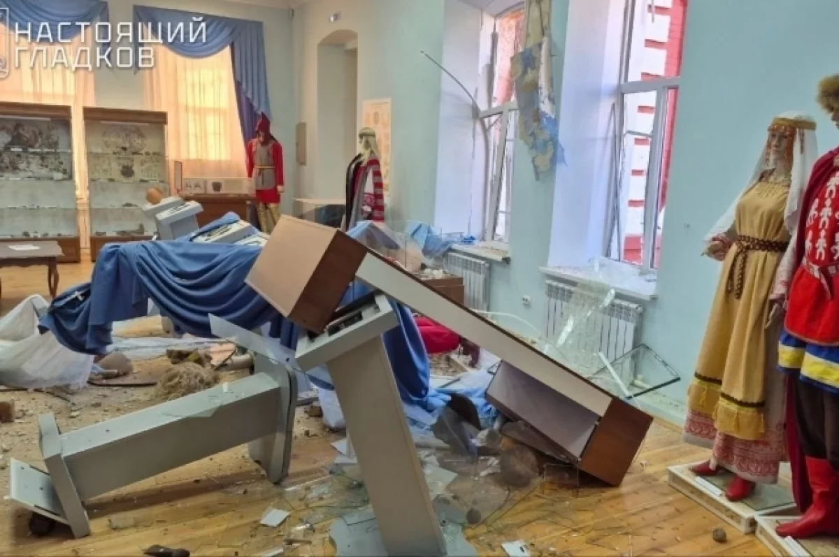 В Грайвороне вражеский дрон нанёс удар по историко-краеведческому музею — повреждены окна, стены, внутренняя отделка.