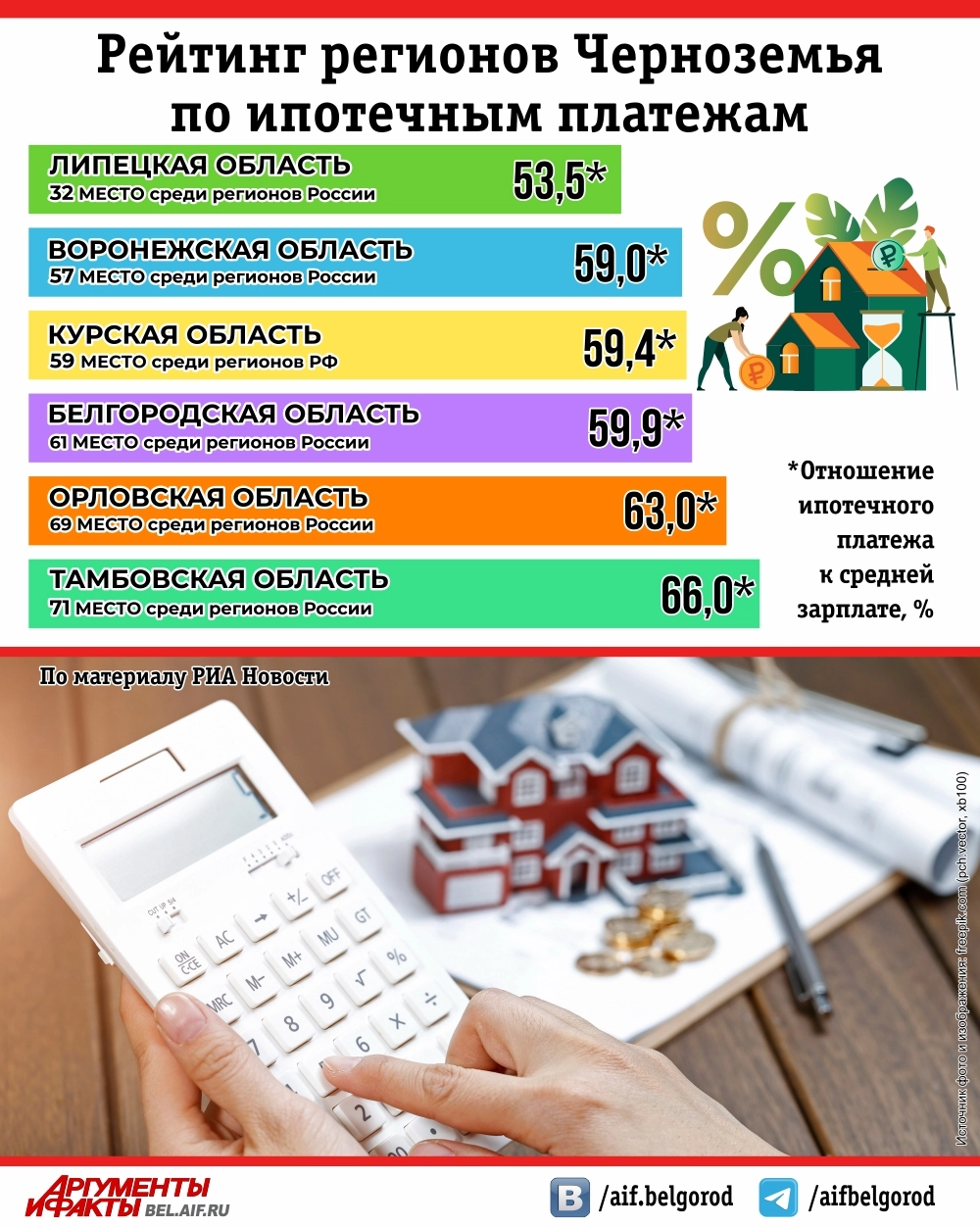 Рейтинг регионов Черноземья по ипотечным платежам. Инфографика