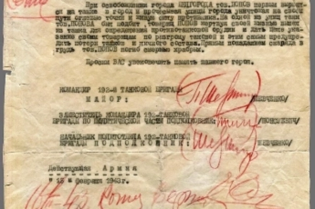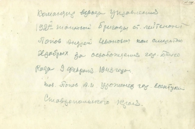 В архивах сохранились фотографии и документы, свидетельствующие о подвиге танкиста Попова.