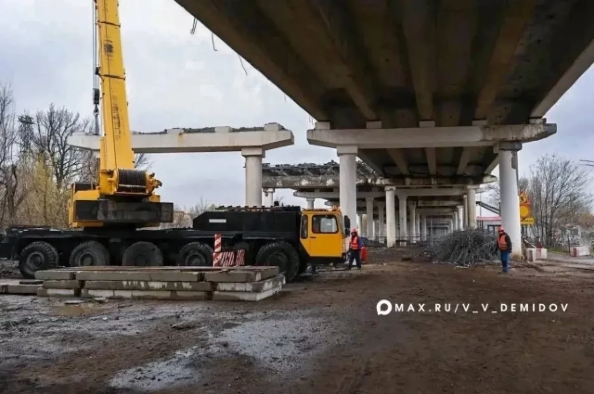 Вначале рабочие занимаются левой половиной путепровода в сторону микрорайона Крейда. Вторая половина остается открытой, чтобы не создавать пробки. На сегодня уже демонтирован асфальт, перила и наружное освещение. Ведётся демонтаж пролетных строений и бетонных усилений стоек. Далее запланированы замена балок пролетных строений и полотна, ремонт опор, переустройство коммуникаций, организация освещения и архитектурной подсветки, а также вело-пешеходных зон.