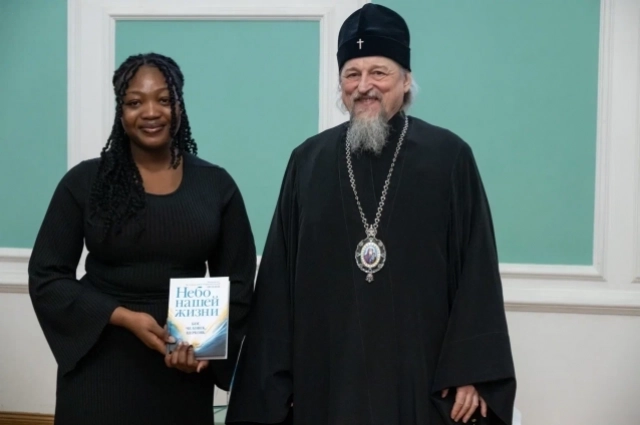 В завершении встречи митрополит Иоанн подарил Сильвии свою книгу «Небо нашей жизни» с дарственной надписью.