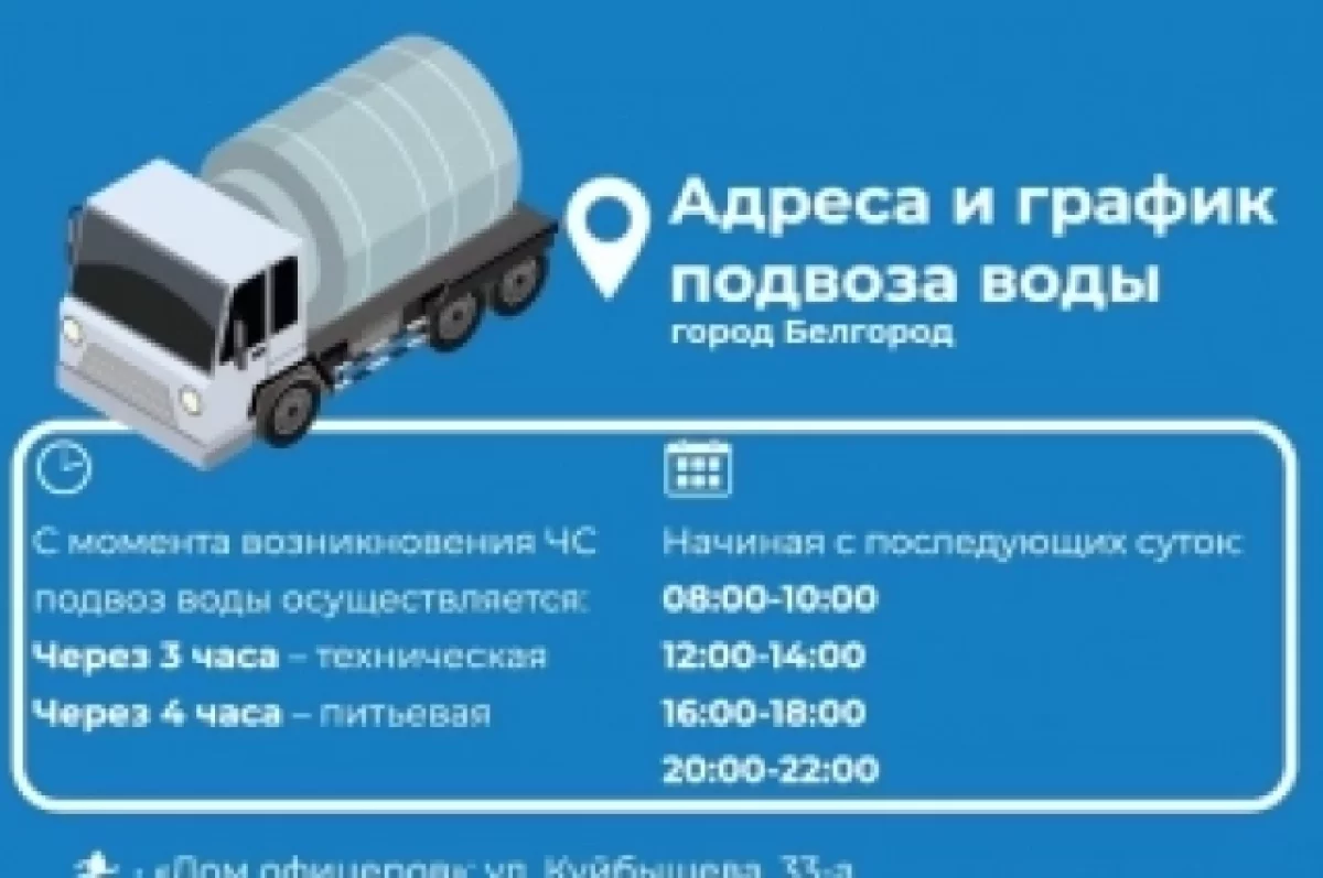 «Я очень благодарен за то, что вы активно обсуждаете данную тему, — обратился к жителям глава региона Вячеслав Гладков в вечернем эфире 30 января. — Но я что хотел сказать: мы подготовили достаточно большое количество мероприятий, которые позволят нам не потерять подачу всей воды. Вода везде одномоментно не пропадет, но перебои будут. За счет чего это достигается? За счет того, что большой объем резервной генерации поставлен на системе водоподготовки и на скважинах. Безусловно, не на всей, безусловно, подъём воды в многоэтажки зависит от этажности. Поэтому вот многофакторный анализ привёл нас к тому графику, который мы с вами имеем.На сегодняшний день он выверен, его готовили специалисты, а точнее — заместитель губернатора Сергей Владимирович Довгалюк, Алексей Николаевич Ботвиньев — министр жилищно-коммунального хозяйства, и Андрей Владимирович Колесников — генеральный директор водоканала. Согласовывали с МЧС: есть питьевая вода, есть техническая. Поэтому надеемся, конечно, что такой ситуации не возникнет, но если возникнет, конечно же, будут недочеты в работе, и мы будем стараться их максимально корректировать, наблюдая и контролируя ситуацию, вмешиваться, если будет необходимость. Надеемся на большой объем информации, который получим от вас».