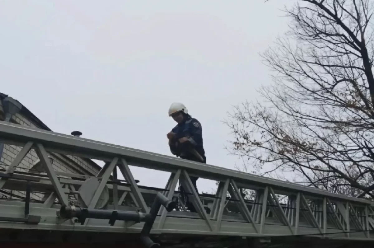 Домашний питомец взобрался на высокое дерево и не смог самостоятельно спуститься. Хозяева испуганного животного, чтобы помочь пушистому любимцу, обратились к сотрудникам МЧС.